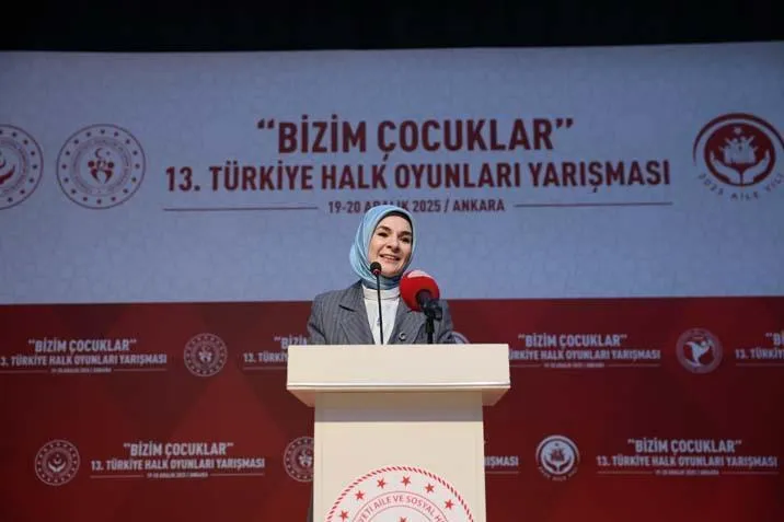 ANKARA- 19.12.2025- Bakan Göktaş, Saray Engelsiz Yaşam Bakım, Rehabilitasyon Merkezinde Çocuk Hizmetleri Genel Müdürlüğünce düzenlenen “Bizim Çocuklar” 13. Türkiye Halk Oyunları Yarışması'nın açılışında 9 farklı ilden yöresel oyunlarını sergileyecek devlet himayesindeki çocuklarla bir araya geldi. Göktaş, salona girişinde devlet himayesi altındaki çocuklardan oluşan İstahbul Ritm Grubu’nun gösterisiyle karşılandı.