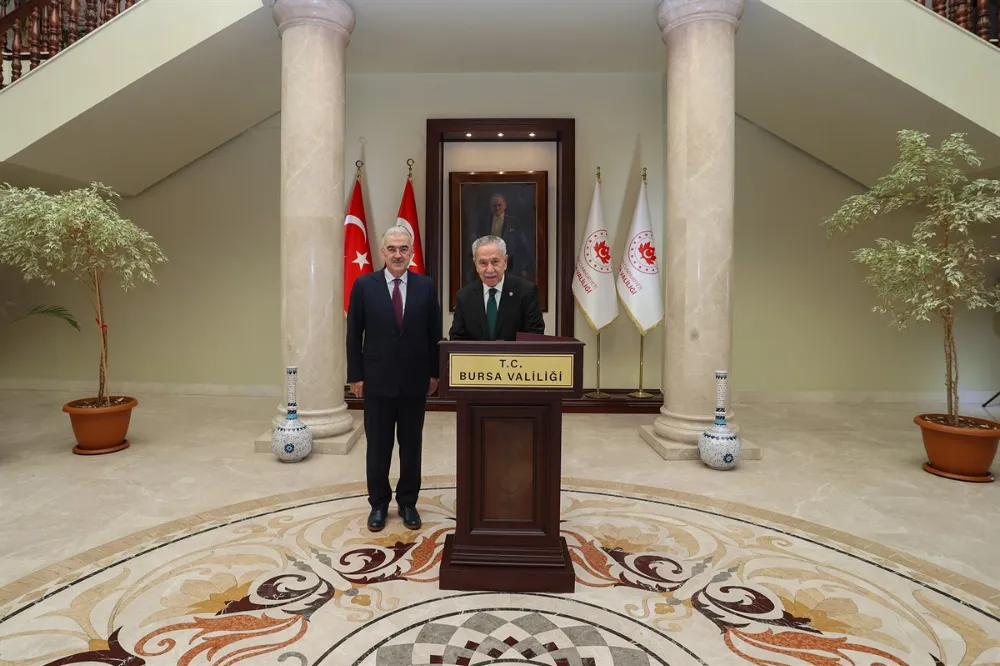 BURSA- 10.02.2026- 22. Dönem Türkiye Büyük Millet Meclisi Başkanı, 61’inci ve 62’nci Dönem Başbakan Yardımcısı Bülent Arınç, Bursa Valisi Erol Ayyıldız'a ziyarette bulundu.