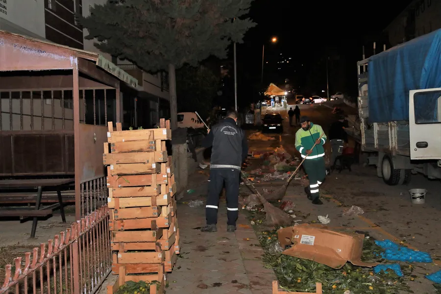 Pazarın sona ermesiyle birlikte sahaya inen ekipler, önce pazaryerinde biriken katı atıkları topluyor, ardından köpüklü suyla fırçalayarak zemini dezenfekte ediyor. Son aşamada ise sokak, tankerlerdeki tazyikli suyla yıkanarak hem kötü kokuların hem de olası sağlık risklerinin önüne geçiliyor. Yapılan bu çalışmalarla yalnızca çevresel temizlik değil, aynı zamanda gıda güvenliği ve halk sağlığı da güvence altına alınıyor.
