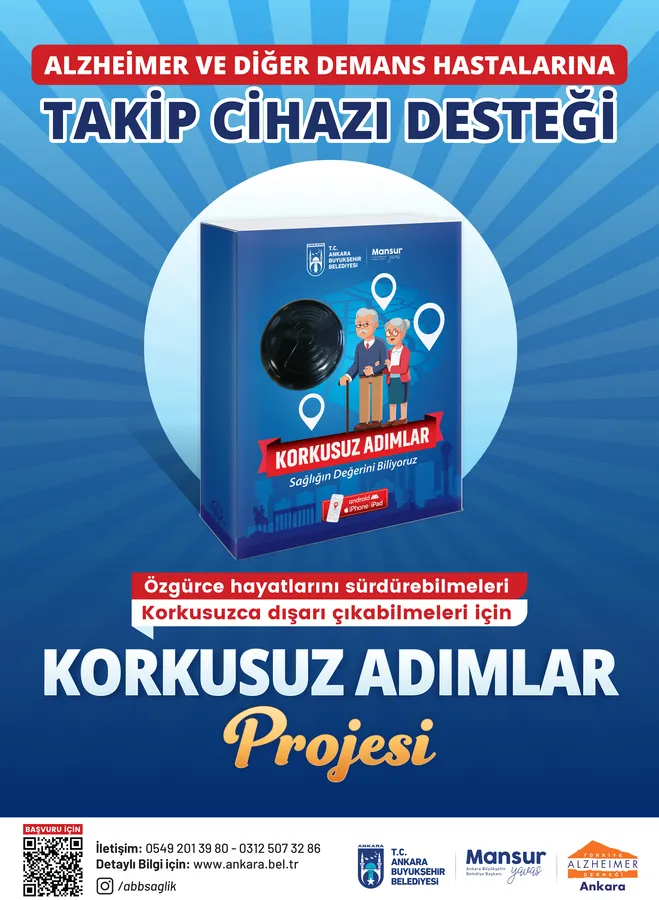 ANKARA- 04.02.2026- Ankara Büyükşehir Belediyesi, alzheimer ve demans hastalarının yön kaybı, unutkanlık ve kaybolma risklerini en aza indirmek amacıyla “Korkusuz Adımlar” projesini hayata geçiriyor. Proje kapsamında sağlanacak takip cihazı desteği sayesinde hastaların konumları anlık olarak takip edilebilecek