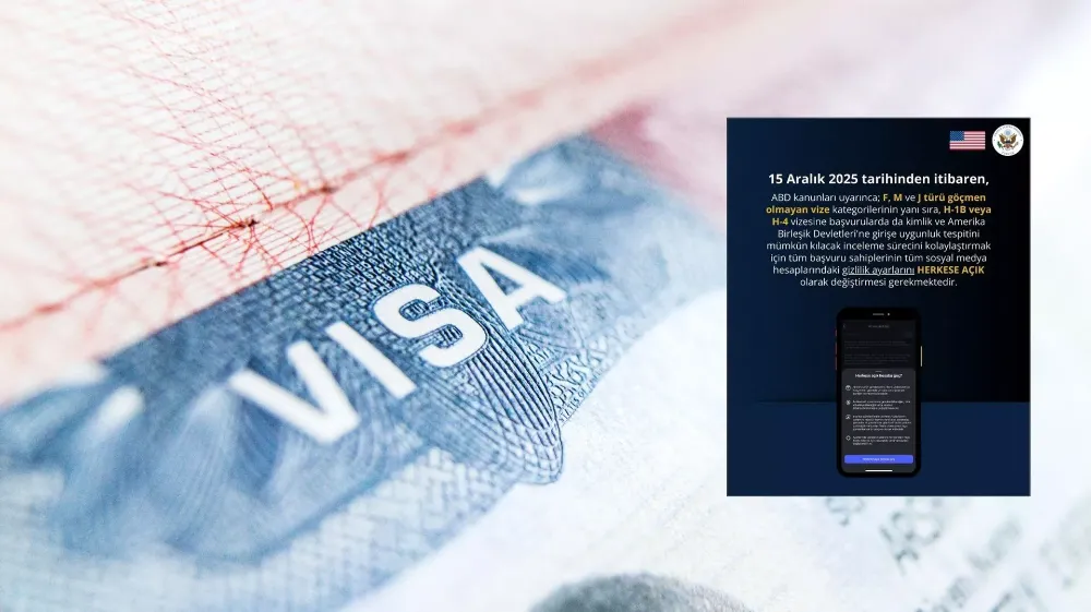 15 Aralık 2025 tarihinden itibaren, ABD kanunları uyarınca; F, M ve J türü göçmen olmayan vize kategorilerinin yanı sıra, H-1B veya H-4 vizesine başvurularda da kimlik ve Amerika Birleşik Devletleri'ne girişe uygunluk tespitini mümkün kılacak inceleme sürecini kolaylaştırmak için tüm başvuru sahiplerinin tüm sosyal medya hesaplarındaki gizlilik ayarlarını HERKESE AÇIK olarak değiştirmesi gerekmektedir.