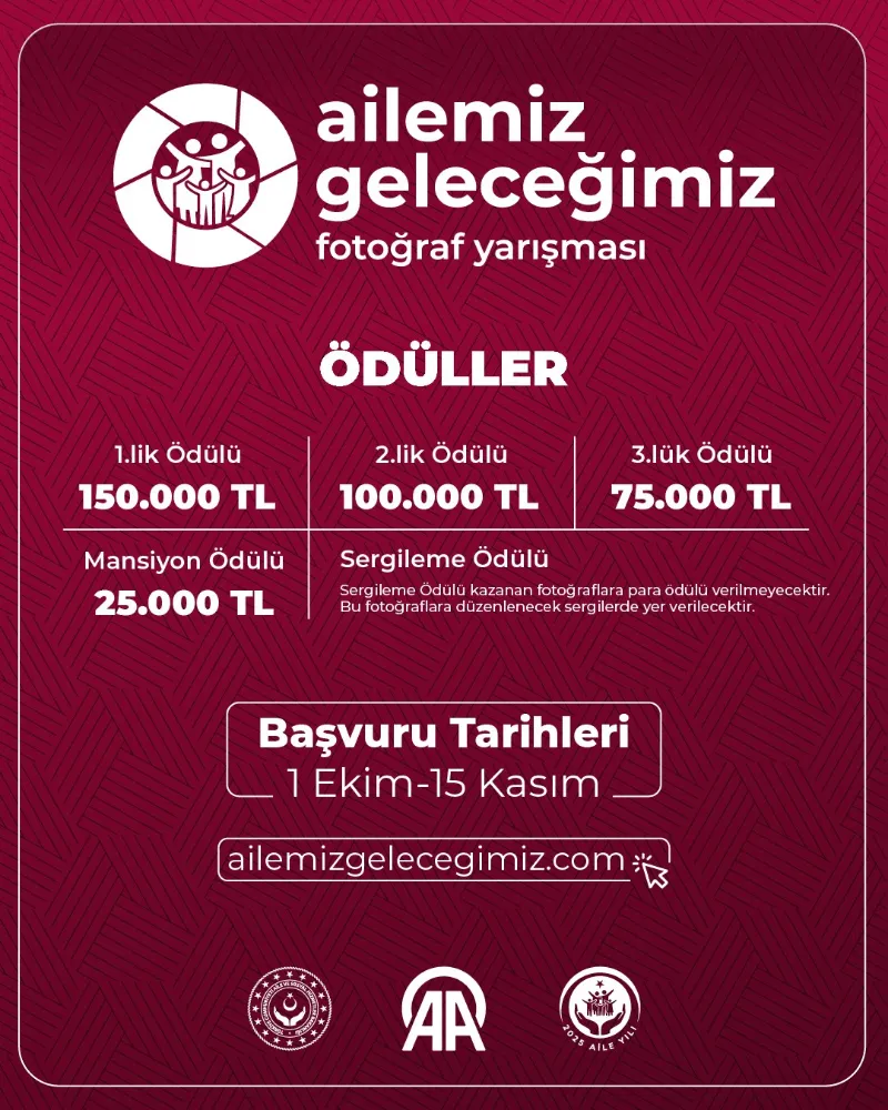 Bu kapsamda, Bakanlık tarafından AA ile işbirliğinde Aile Yılı'na özel düzenlenecek Ailemiz Geleceğimiz Fotoğraf Yarışması ile milletin birliğinin, beraberliğinin ve devamlılığının teminatı olan ailenin, modern çağın tehlikelerine karşı daha dayanıklı kılınmasına katkı sağlanması hedefleniyor.