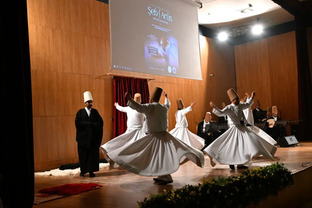 gösterisi hakkında bilgiler veren Ankara Müzik ve Güzel Sanatlar Üniversitesi Rektörü Prof. Dr. Erhan Özden, “Mevlânâ Celâleddîn-i Rûmi, 8 asır önce dünyaya barışı ve sevgiyi anlatmıştır. Sema gösterisi, insanlara sevgiyi, saygıyı, Allah’tan geldiğimizi ve Allah’a gideceğimizi anlatır. Semazenlerin giydiği her bir unsur da ayrı bir anlam taşır. Başlarındaki sikke mezar taşını simgelerken, nefsin ölümünü ve benliğin terk edilişini anlatır. Tennûre ise kefeni sembolize eder. Sırtlarındaki hırka kabri simgelerken, dünya bağlarından arınmayı ifade eder” dedi. Profesör Özden, Şeb-i Arûs anma programına ev sahipliği yapan Altındağ Belediyesi’ne ve Başkan Veysel Tiryaki’ye teşekkürlerini iletti.