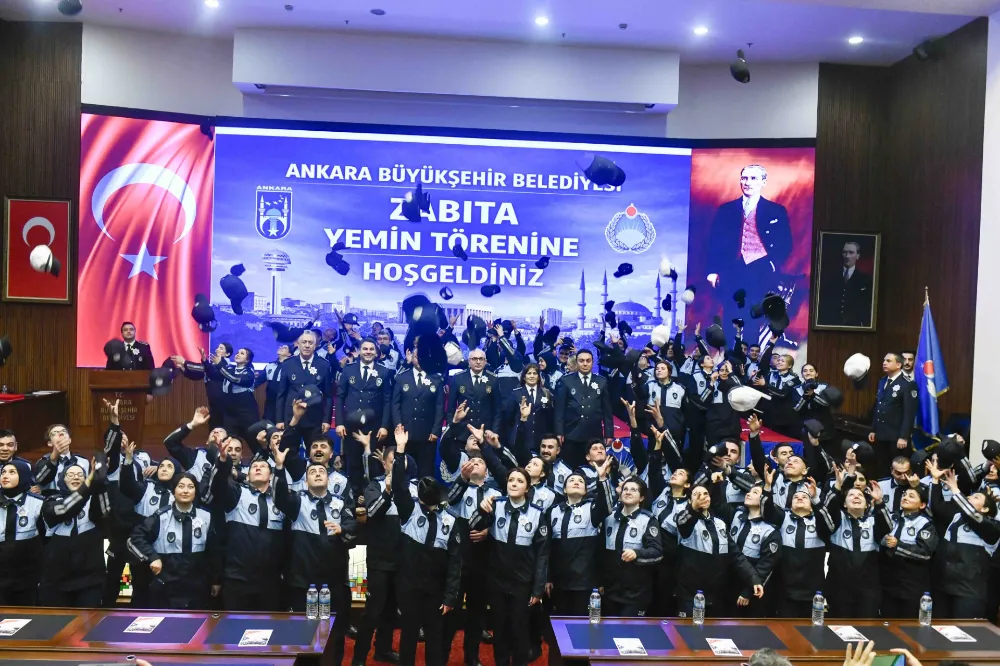Tüm zabıta personeli adına konuşan Asım Oğuzhan Altunkaya ise “Liyakat ve adaletin esas alındığı bir alım süreciyle bizlere umut olan, görevde yükselme imkânlarıyla kariyer yolumuzu açan ve meslek sahibi olmamızı sağlayarak ailelerimizin üzerimizdeki emeklerinin karşılığını verme gururunu bizlere yaşatan başta Büyükşehir Belediye Başkanı’mız Mansur Yavaş olmak üzere emeği geçen herkese şükranlarımızı sunuyoruz. Büyük Önder Gazi Mustafa Kemal Atatürk’ün ‘Vatanını en çok seven görevini en iyi yapandır’ sözünü kendimize rehber edinerek Yüce Türk milletinin huzuru, sağlığı ve güvenliği için görevimizi her koşulda en iyi şekilde yerine getirmek için gayret edeceğiz. Zabıta teşkilatının bir ferdi olmanın sorumluluğunun farkındayız. Ankara’mıza yakışır bir duruşla adaletli, özverili ve insan odaklı bir anlayışla hizmet edeceğimize dair söz veriyoruz” ifadelerini kullandı.