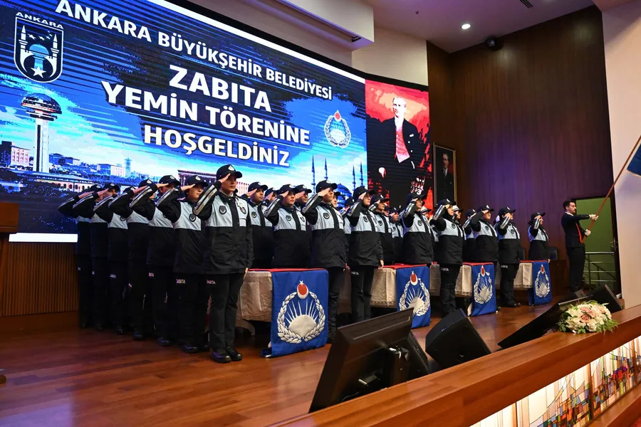 Ankara Büyükşehir Belediyesi’nde (ABB) zabıta teşkilatı güçlenmeye devam ediyor. Zabıta Daire Başkanlığı’nda iki yıllık aday memurluk sürecini başarıyla tamamlayan 110 zabıta memuru için yemin töreni düzenlendi.
