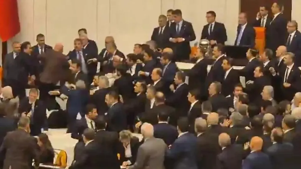 İki bakan daha sonra AK Partili vekillerin arasında yemin etti. Meclisteki kavga sonrasında oturum kapatıldı.