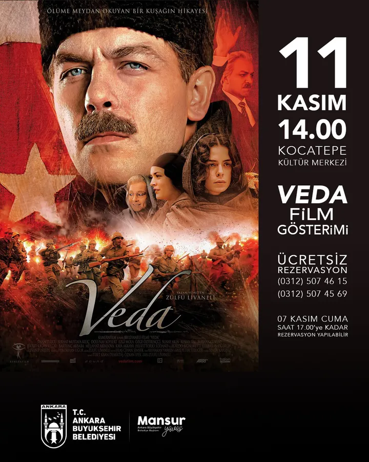 Atatürk’ün hayatını, fikirlerini ve Cumhuriyet’in kuruluş sürecini anlatan program kapsamında; 10 Kasım Pazartesi günü Kocatepe Kültür Merkezi’nde 13.00-17.00 saatleri arasında çocuklara yönelik “Atatürk Temalı Çocuk Atölyeleri” gerçekleştirilecek. Aynı gün saat 20.00’de ise “Son 11 Ay” isimli lirik anlatı sahnelenecek.Anma etkinlikleri 11 Kasım Salı günü saat 14.00’te büyük ilgi gören “Veda” filminin gösterimiyle devam edecek.