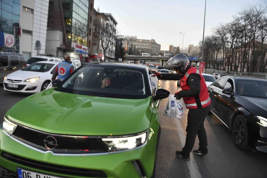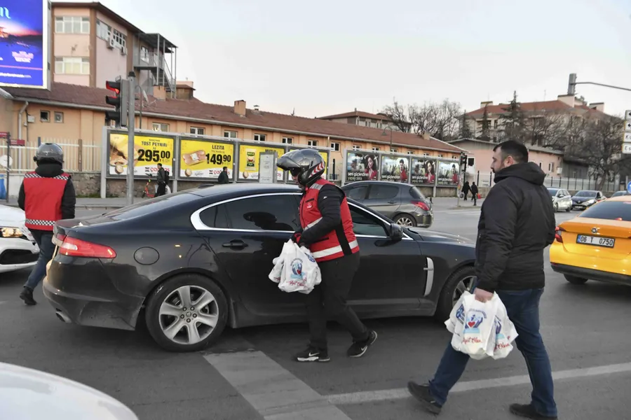 Ankara Büyükşehir Belediyesi ve Tüm Anadolu Motosikletli Kuryeler Federasyonu, iftara yolda yakalanan Başkentliler için kumanya dağıtımı gerçekleştirdi.