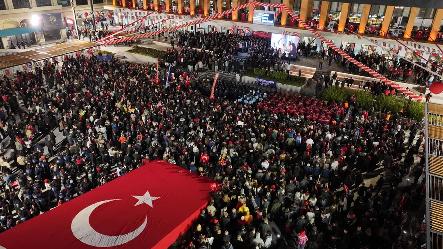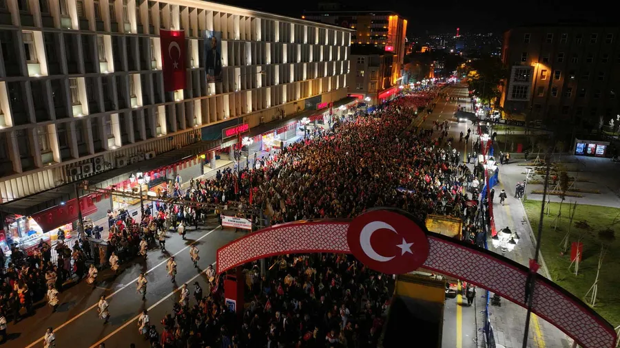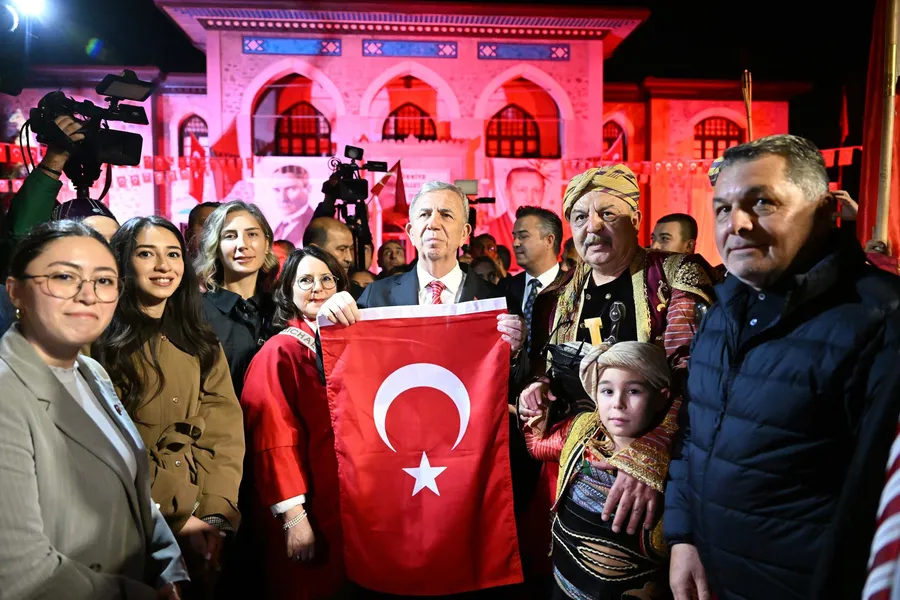 Mareşal Atatürk Anıtı’ndan Birinci Meclis’e kadar meşalelerle yürüyen vatandaşlar, ellerinde Türk bayraklarıyla Cumhuriyet marşlarını hep bir ağızdan söyledi. ABB Başkanı Mansur Yavaş da kortejde yer alarak vatandaşlarla birlikte yürüdü.