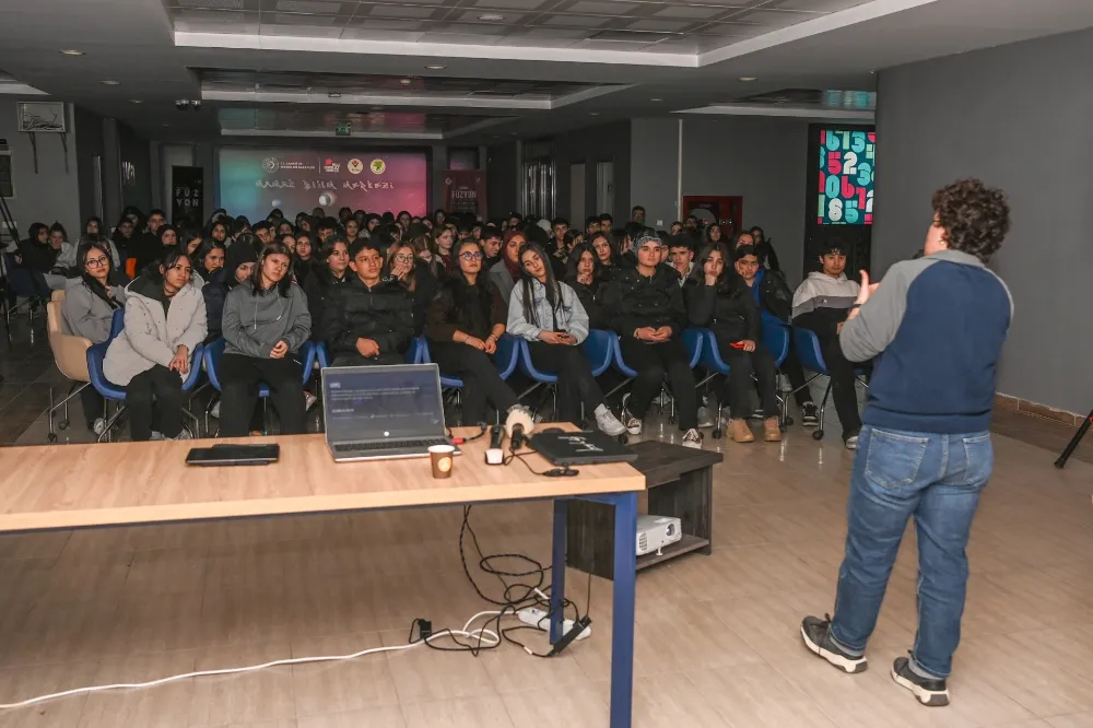Söyleşide; yapay zekânın temel çalışma prensipleri, algoritma mantığı, veri işleme süreçleri ve teknik altyapısı hakkında bilgilendirmeler yapıldı. Makine öğrenmesi, büyük veri analizi ve otomasyon sistemleri gibi başlıklar sade ve anlaşılır bir dille aktarılırken; gençlerin gelecekte bu alanda nasıl kariyer planlayabileceklerine dair öneriler de paylaşıldı. Yapay zekânın günlük yaşamdan eğitime, sağlıktan üretime kadar pek çok alandaki kullanım örnekleri üzerinden yapılan paylaşımlar; gençlerin ufkunu genişletirken geleceğin teknoloji dünyasına dair farkındalıklarını da artırıyor.
