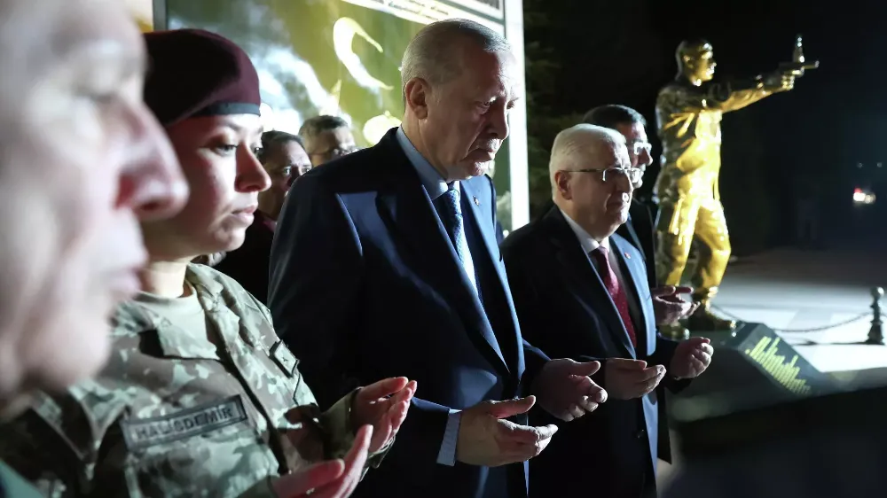 ANKARA- 05.03.2026- Cumhurbaşkanı Recep Tayyip Erdoğan, Özel Kuvvetler Komutanlığı’nda düzenlenen 'Mehmetçik ile iftar' programına katıldı. Programın ardından Erdoğan, 15 Temmuz darbe girişimi sırasında hayatını kaybeden Ömer Halisdemir'in anıtının önünde dua etti. Erdoğan’a, Cumhurbaşkanı Yardımcısı Cevdet Yılmaz ve Milli Savunma Bakanı Yaşar Güler eşlik etti.
