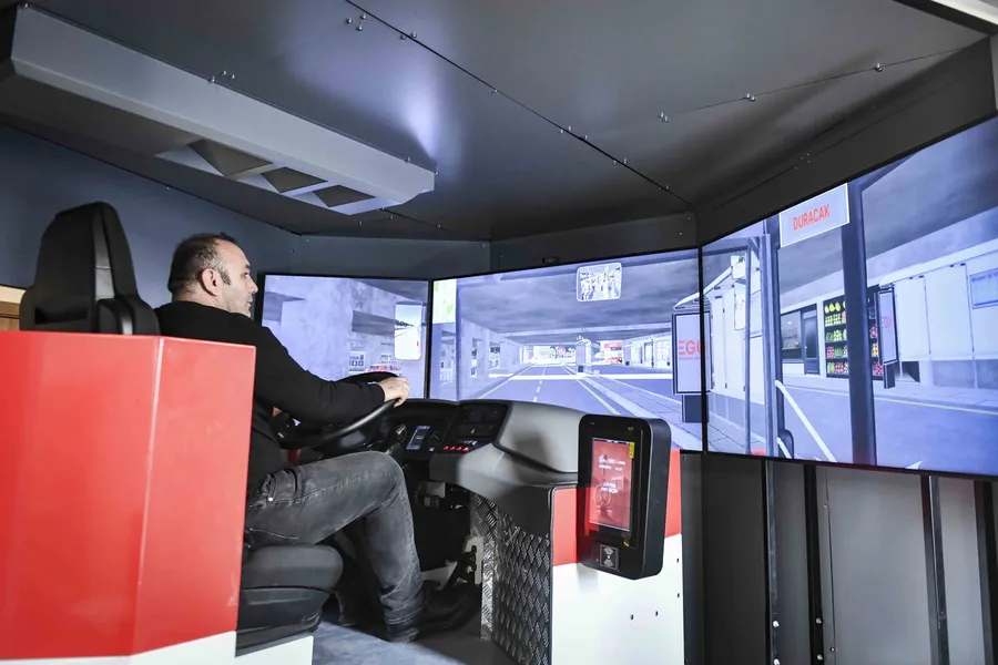 EGO’nun geliştirdiği yeni simülasyon sistemi, filodaki tüm otobüslerin teknik özellikleri dikkate alınarak oluşturuldu. Sistem, sürücünün performansını anlık olarak ölçüyor ve farklı verileri yapay zekâ ile analiz ederek kişiye özel geri bildirim oluşturuyor. Simülasyon ortamında göz takip sistemi, sürücünün bakış noktalarını gerçek zamanlı tespit ediyor. Ekran bölümlere ayrılarak sürücünün hangi alana baktığı belirleniyor, özellikle kavşak geçişleri gibi kritik anlarda aynalara bakış kontrolü otomatik olarak analiz ediliyor. Ayrıca sürücünün bileğine takılan nabız ölçüm sensörleri yardımıyla kalp atış hızı takip edilerek stres ve heyecan seviyeleri objektif şekilde değerlendiriliyor.