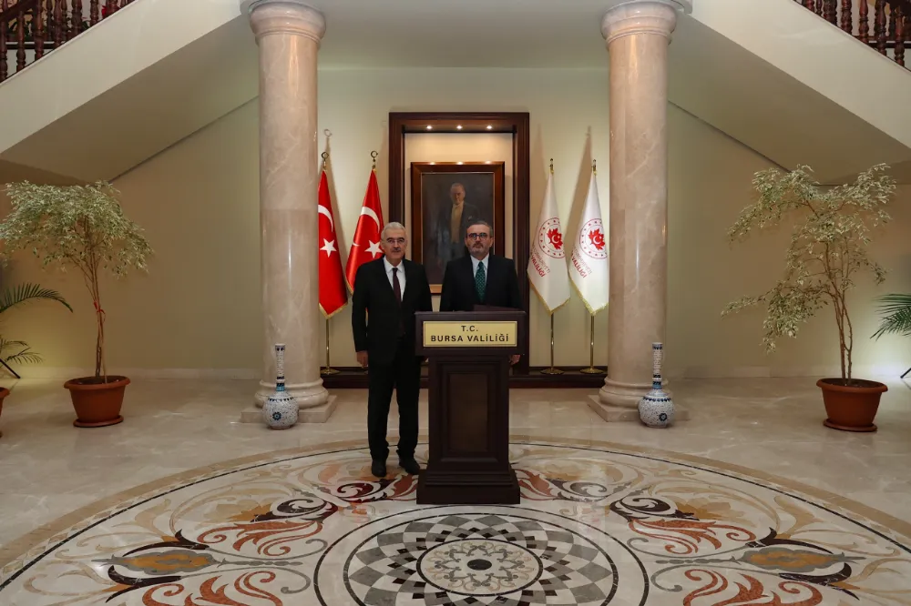 BURSA- 22.12.2025- Eski Kültür ve Turizm Bakanı ve AK Parti Merkez Karar ve Yönetim Kurulu (MKYK) Üyesi Mahir Ünal, Bursa Valisi Erol Ayyıldız'ı makamında ziyaret etti. İki isim, Bursa Valiliği binasında gerçekleşen görüşmede bir araya geldi.