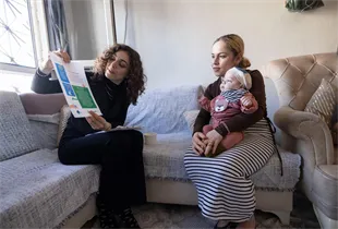 Gebeliğinin 7. ayından bu yana ekiplerin ev ziyaretinde bulunduğu 7 aylık İsa Murat Korkunç’un annesi Meryem Korkunç, “İzmir Büyükşehir Belediyesi’nden ev ziyaretleri yapılıyor. Çok memnunum, bütün annelere tavsiye ederim. Bize bir aile oldular. Bilmediğim çok şey öğrendim. Bebeğin durumunu, gelişimini soruyorlar. Beni de soruyorlar, psikolojik olarak kendime geldim ve toparlandım. Çünkü anladım ki anne olarak kendimi de düşünmem lazımmış” sözlerine yer verdi.