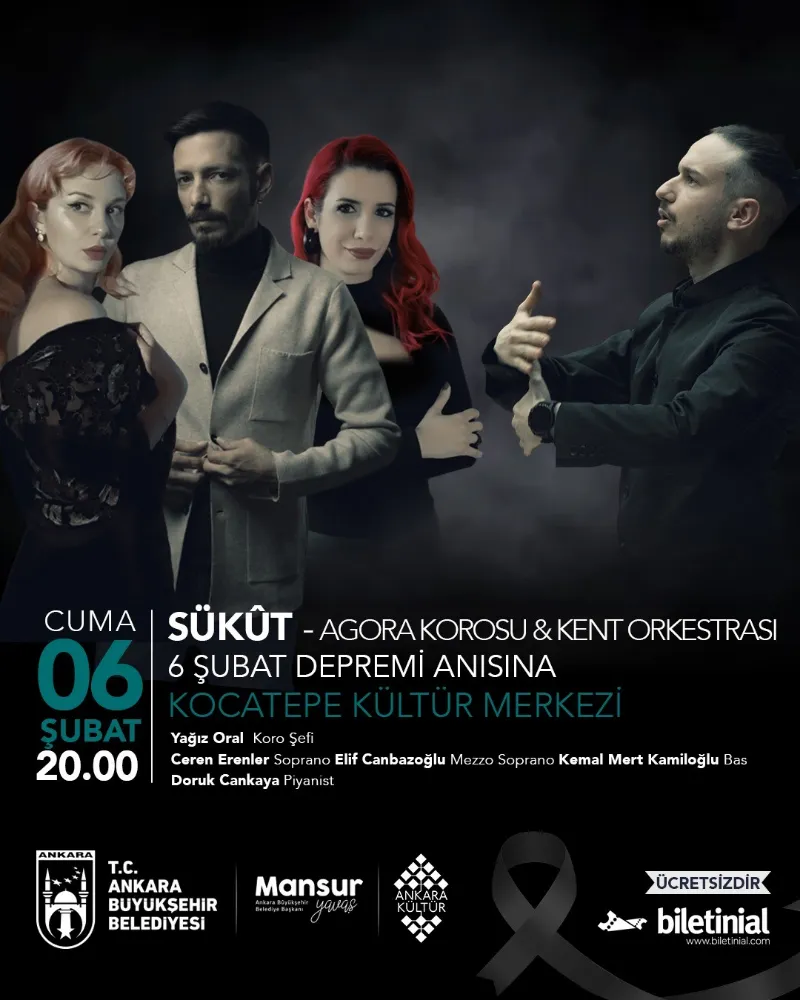 ANKARA- 04.02.2026- Ankara Büyükşehir Belediyesi, 6 Şubat 2023 tarihinde meydana gelen Kahramanmaraş depremlerinde yaşamını yitiren vatandaşları anmak amacıyla Agora Korosu ile Kent Orkestrası’nın seslendireceği özel bir konsere ev sahipliği yapacak.