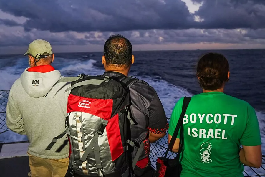 Filodaki Adagio gemisinde bulunan Türk aktivist Muhammed Salih, sosyal medya hesabından paylaştığı videoda, filoya 80 kilometre (50 mil) uzaklıkta bir İsrail Donanması gemisinin saptandığını bildirdi.