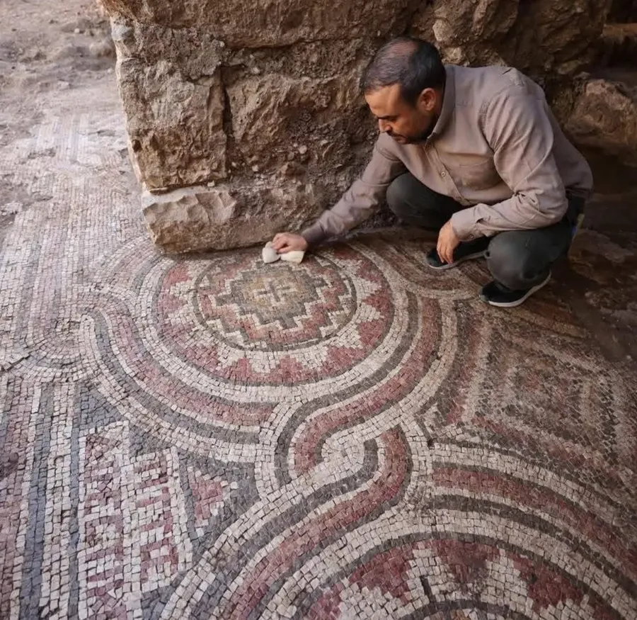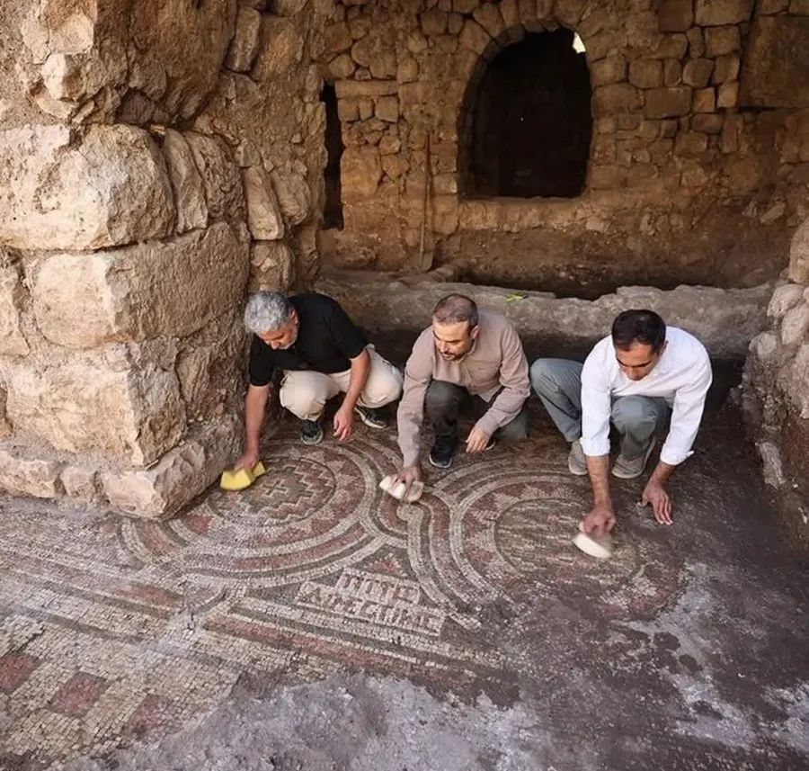 MARDİN- 16.10.2025- Mardin’in Midyat ilçesinde, tarihi bir değirmenin tabanında yaklaşık 1500 yıllık mozaik gün yüzüne çıktı. Midyat ile Nusaybin arasındaki Çağ Çağ Çayı Vadisi’ndeki Sivrice Mahallesi Beyazsu mesire alanında tespit edilen mozaik, bölgenin zengin tarihine ışık tutacak nitelikte.