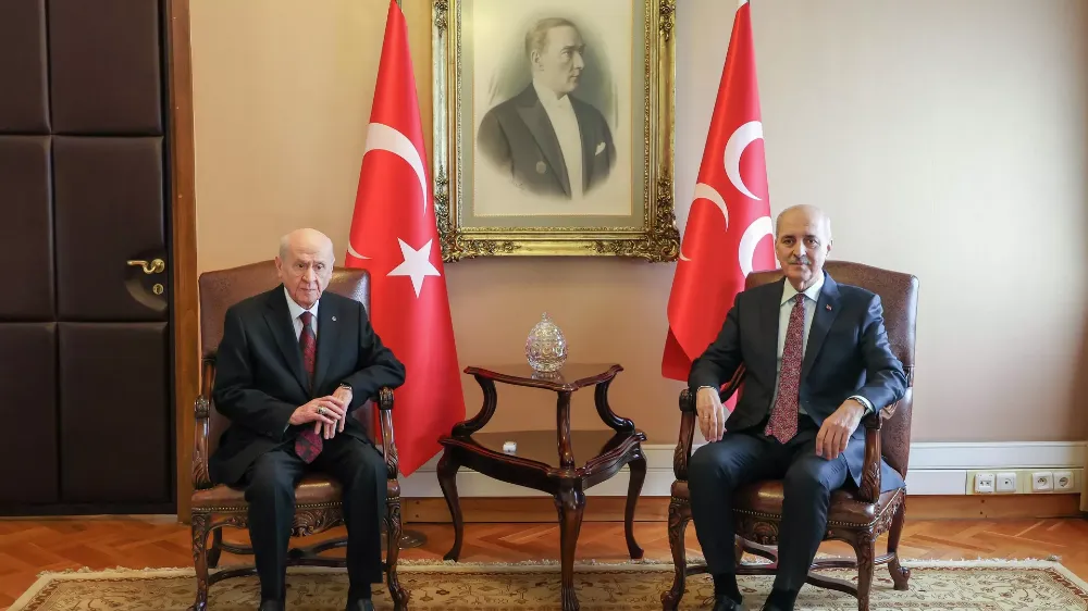 ANKARA- 24.02.2026- TBMM Başkanı Numan Kurtulmuş, MHP Genel Başkanı Devlet Bahçeli ile görüştü. Yaklaşık 30 dakika süren görüşme sonrasında açıklamalarda bulunan Kurtulmuş, "Terörsüz Türkiye" ile Milli Dayanışma, Kardeşlik ve Demokrasi Komisyonu süreçlerindeki öncülüğü, desteği dolayısıyla teşekkür etmek için MHP Genel Başkanı Bahçeli'yi ziyaret ettiğini söyledi.