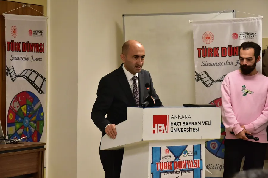 ANKARA- 23.10.2025-Programa; İçişleri Bakanlığı Sivil Toplumla İlişkiler Daire Başkanı Mehmet Fatih Günay, Türk Dünyası Gazeteciler Federasyonu Başkanı Menderes Demir Ankara Hacı Bayram Veli Üniversitesi İletişim Fakültesi Dekanı Prof. Dr. Ayşe Elif Kaya, Sinema Oyuncuları Meslek Birliği Başkanı, Türk Dünyası Sinemacılar Birliği Kurucu Mütevelli Heyeti Başkanı Renan Bilek, Türk Dünyası Sinemacılar Birlik Başkanları ve çeşitli Türk Cumhuriyetlerinden sinemacılar katıldı.