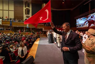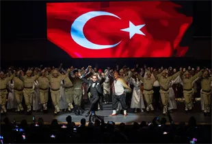 İZMİR- 25.03.2026- İzmir Büyükşehir Belediyesi tarafından 18 Mart Çanakkale Zaferi ve Şehitleri Anma Günü etkinlikleri kapsamında hazırlanan “Uyan Memet” dans ve müzikal anlatısı, Ahmed Adnan Saygun Sanat Merkezi’nde (AASSM) sahnelendi. Yaklaşık 200 kişilik dev kadronun yer aldığı gösteri, Çanakkale’deki direniş ve kahramanlık hikâyesini sahneye taşıyarak izleyicilere duygu dolu anlar yaşattı. Gösteriyi Başkan Dr. Cemil Tugay ve eşi Öznur Tugay da izlerken, program sonunda salonu dolduran izleyiciler İzmir Marşı’nı hep bir ağızdan söyledi.