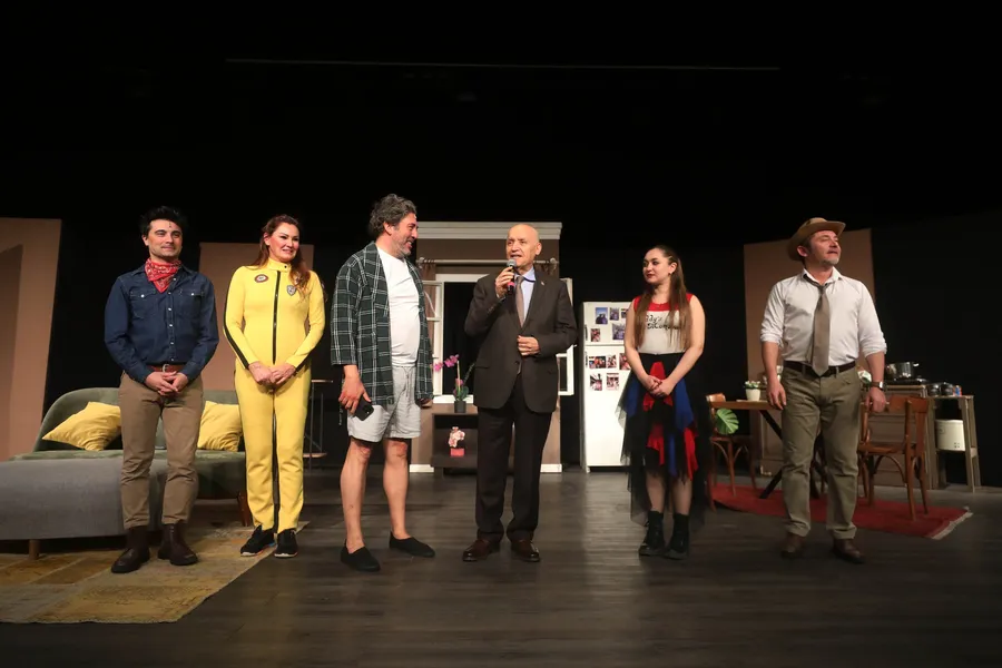 Tiyatroya verdiği destek için Başkan Yaşar’a teşekkür eden sevilen oyuncu Emre Kınay ise “Bugün hala tiyatro yapabiliyorsak başkanım gibi laik, çağdaş, demokrat ve her şeyden önce Atatürk’ün izinden giden, aydınlık Cumhuriyet sevdalıları sayesinde yapabiliyoruz” şeklinde konuştu.