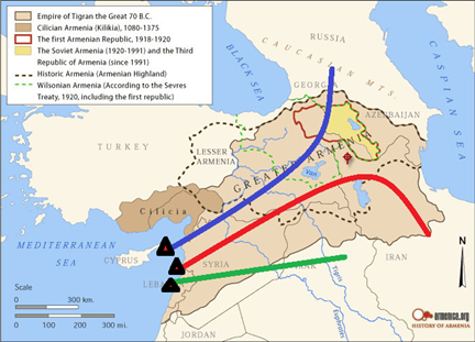 1-Bu üç hayalperest ideoloji de aynı topraklara gözlerini dikmiş görünüyorlar. “Büyük Ermenistan” haritalarına bakılırsa Türkiye’nin Doğu ve Güneydoğu bölgeleri, Doğu Karadeniz’in bir kısmı, İç Anadolu’dan bazı kısımlar, Akdeniz Bölgesi’nin doğu tarafı, Suriye’nin tamamına yakını, Lübnan’ın tamamı, Irak’ın Kuzeyinde Barzani ve Talabani’nin “Kürdistan” adıyla yönettiği topraklar, İran’ın Batı kısmı, Azerbaycan’ın büyük bölümü bu haritanın içinde görülecektir.